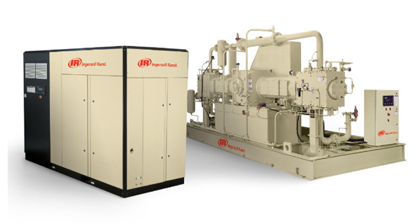 在生產(chǎn)大型瓶子時經(jīng)常要耗費(fèi)大量的高壓和低壓的壓縮空氣。對于選用組合式空氣系統(tǒng)的某些用戶,英格索蘭可以提供主壓縮機(jī)配備增壓器的系統(tǒng)解決方案。這種組合的優(yōu)勢在于他允許每個流程可以獨(dú)立增加流量。主壓縮機(jī)可以選擇無油螺桿壓縮機(jī)或離心式壓縮機(jī),無需要經(jīng)常維護(hù)保養(yǎng)。堅(jiān)固的兩級無油潤滑活塞機(jī)可以作為增壓器使用。